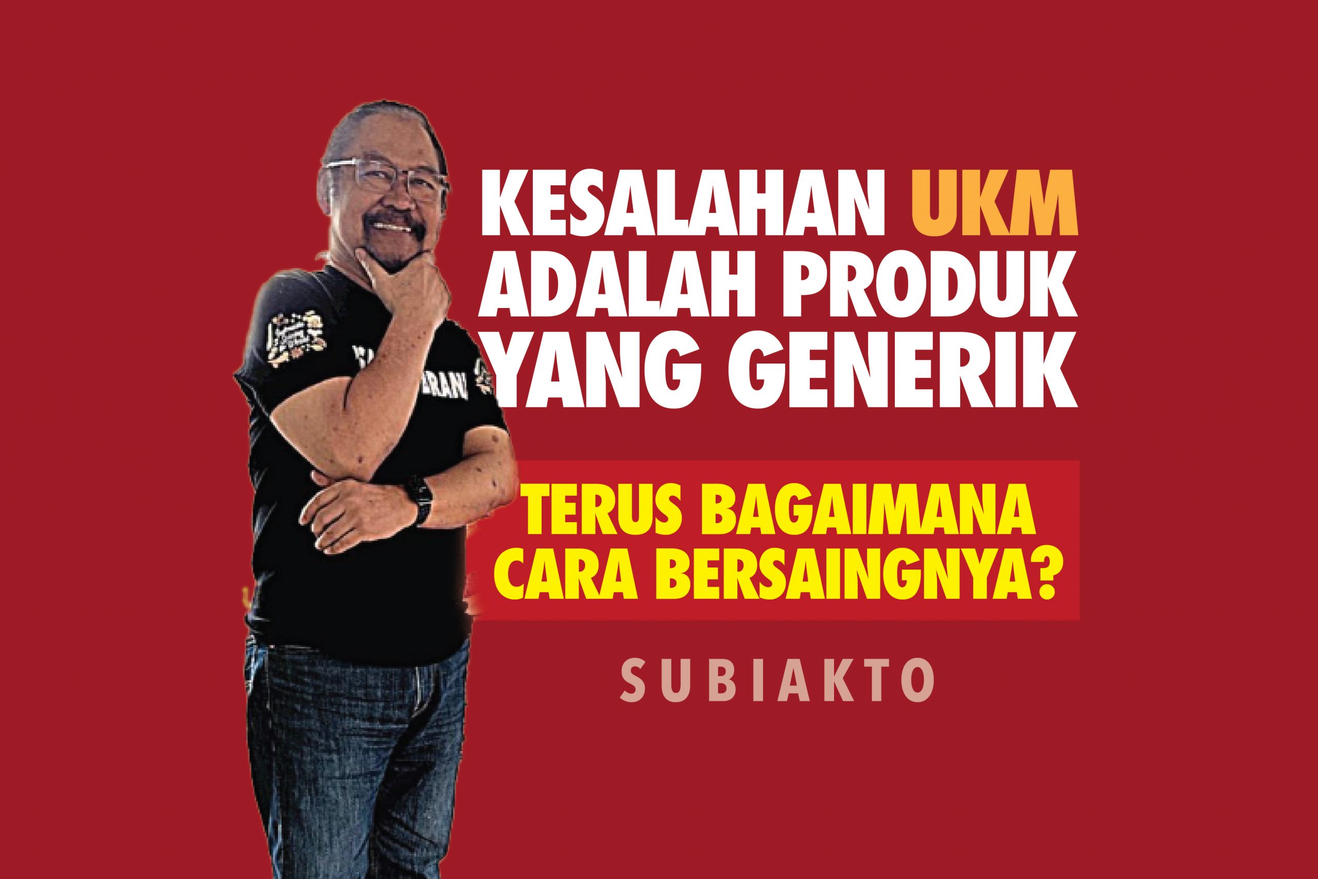 Menurut Pak Bi, produk generik adalah produk yang sudah dikenal masyarakat umum. Pada umumnya, UKM selalu melakukan ATM (amati, tiru, modifikasi), tapi tidak jauh-jauh dari produk yang sudah kuat di pasar — bahkan packaging, logo, pemilihan warna juga terkadang meniru merek yang sudah besar sehingga tidak bisa bersaing. Karena inilah banyak UKM berada di kategori yang sama, memenuhi kebutuhan konsumen yang sama, memiliki fitur produk yang sama sehingga nyaris tidak memiliki perbedaan satu sama lain.