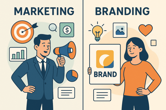 Dalam dunia bisnis, marketing dan branding sering dianggap sama, padahal keduanya memainkan peran yang berbeda. Marketing berfokus pada cara menarik perhatian dan mendorong orang untuk membeli melalui promosi, penawaran, atau campaign yang menggugah minat. Marketing bekerja cepat, menciptakan dorongan sesaat agar konsumen mengambil keputusan. Namun efeknya bisa berhenti di transaksi pertama jika tidak diikuti dengan nilai yang lebih dalam.