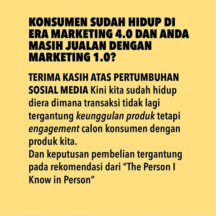 Bagaimana menyiasati keadaan dimana konsumen sudah hidup di era MARKETING 4.0 dan anda masih jualan dengan strategi MARKETING 1.0?