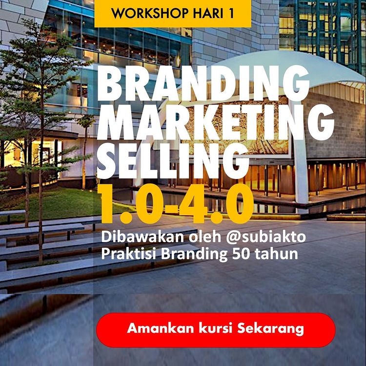 Karena itu WORKSHOP HARI PERTAMA Senin 19 September 2022, 09.00 – 17.00 WIB mengupas tuntas BRANDING MARKETING SELLING 1.0-4.0 oleh Pak Bi @subiakto